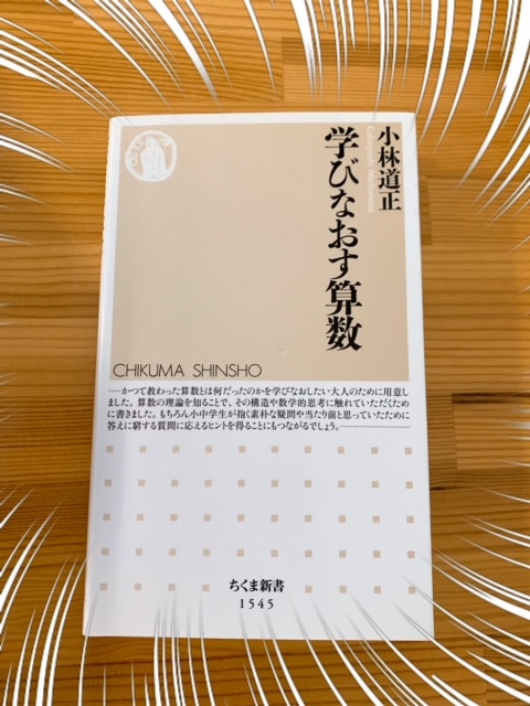 そこで、今回おススメしたいのが、『学びなおす算数(小林道正著/ちくま新書)』大人のための算数教室だそうです。